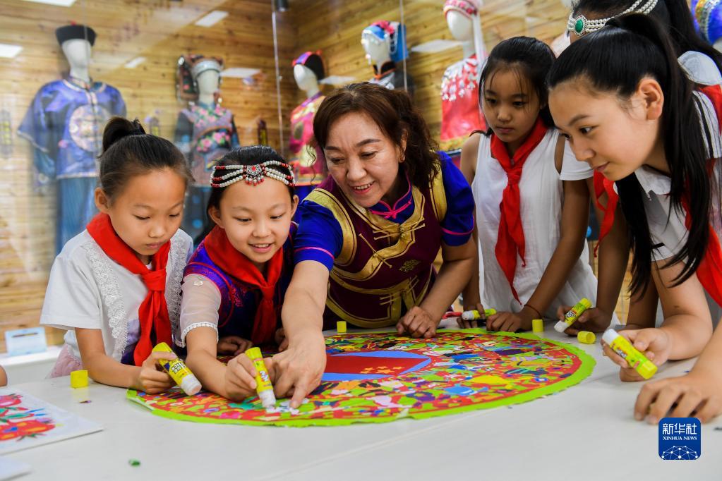 這是2019年7月15日拍攝的赤峰市松山區(qū)興安街道臨潢家園社區(qū)的民族融合小課桌。新華社記者 劉磊 攝