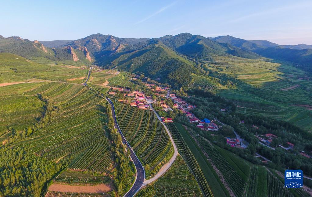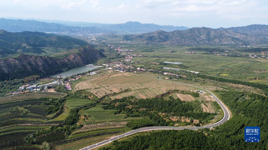 這是2021年8月30日拍攝的內(nèi)蒙古赤峰市喀喇沁旗馬鞍山村風(fēng)光(無人機照片)。新華社記者 貝赫 攝