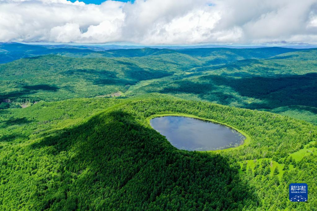這是內(nèi)蒙古阿爾山天池風(fēng)光(2021年7月14日攝,無人機照片)。新華社記者 連振 攝