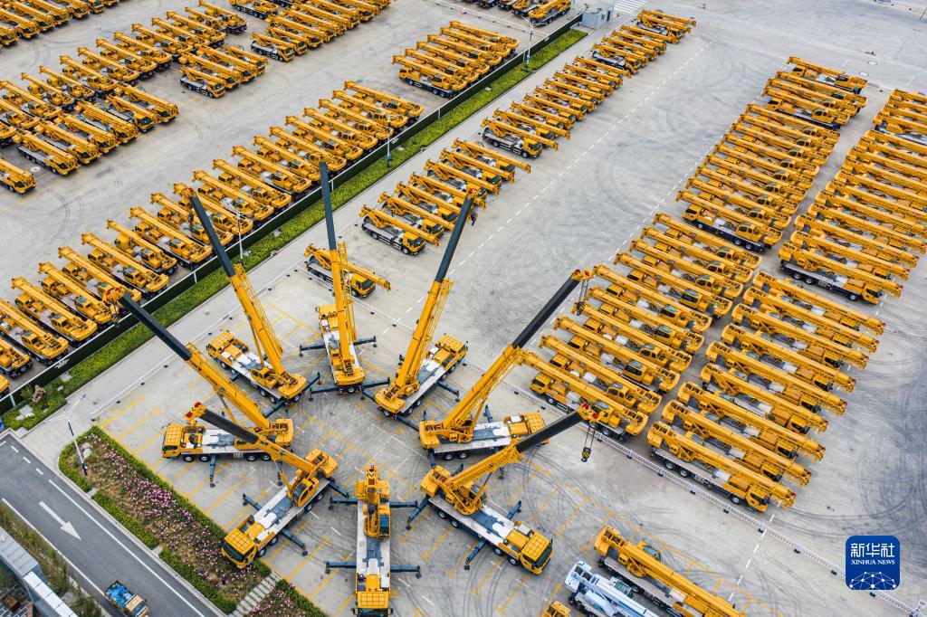這是5月9日拍攝的江蘇徐工集團(tuán)重型機(jī)械有限公司的產(chǎn)品調(diào)試場(無人機(jī)照片)。新華社發(fā)