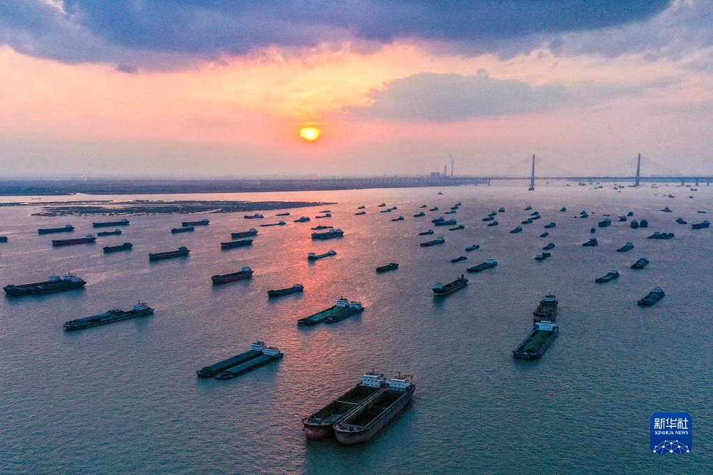 這是2021年10月25日拍攝的長江南通段(無人機(jī)照片)。新華社記者 李博 攝