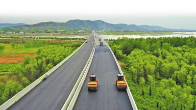西淅高速?gòu)垶程卮髽蚪柚鷶?shù)字化力量進(jìn)行瀝青攤鋪碾壓施工。魏鵬旭 攝