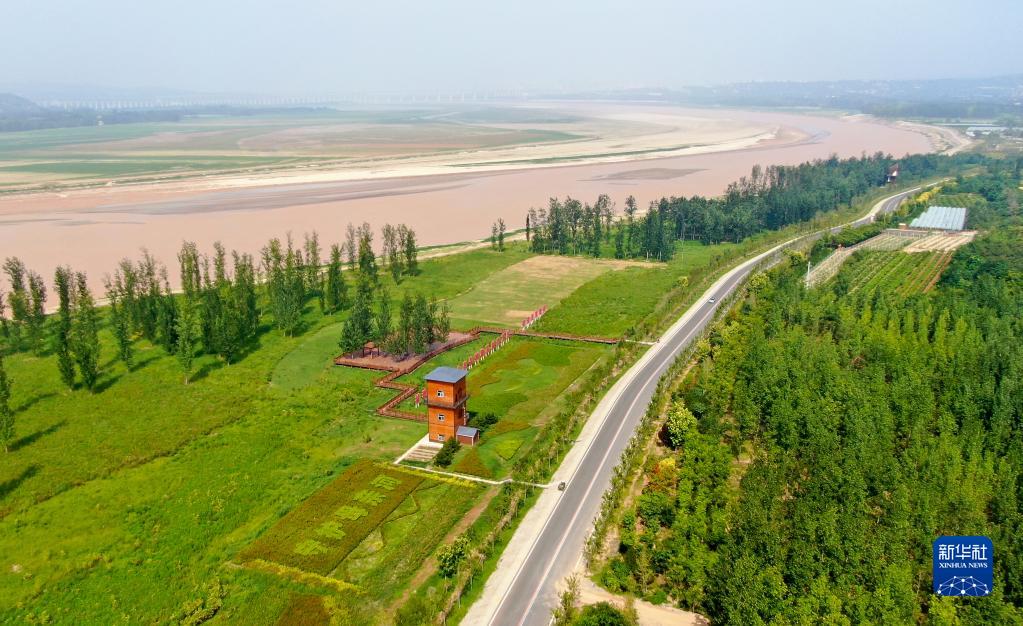 這是2022年8月10日在河南省三門峽市拍攝的黃河生態(tài)廊道(無人機(jī)照片)。新華社記者 郝源 攝