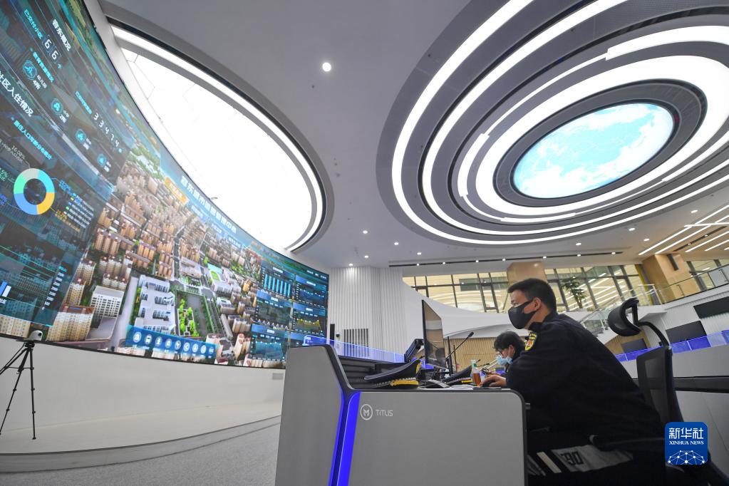 2022年3月29日,工作人員在雄安新區(qū)容東城市運(yùn)營管理中心監(jiān)管平臺工作。新華社記者 朱旭東 攝