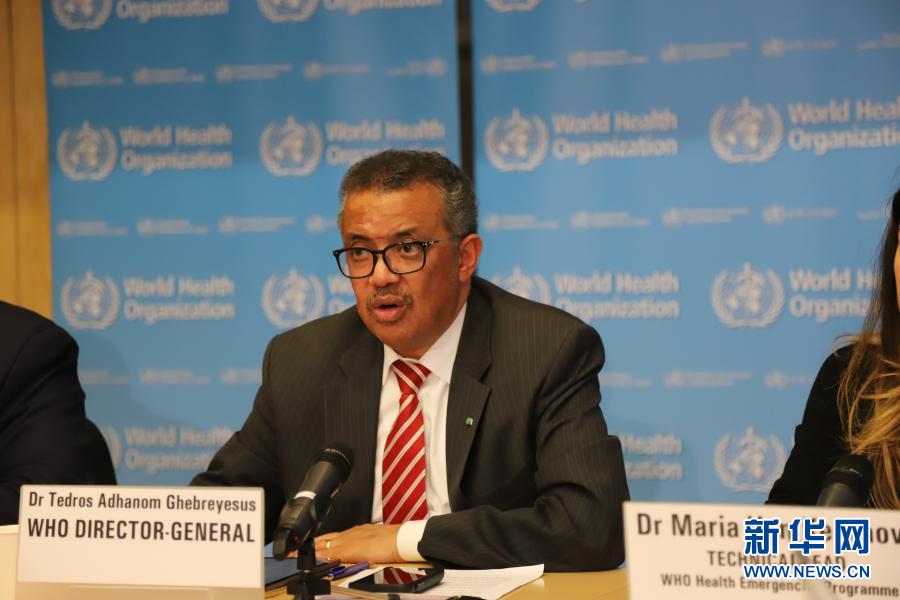 2020年3月11日,在瑞士日內(nèi)瓦,世界衛(wèi)生組織總干事譚德塞在例行記者會上發(fā)言。譚德塞說,新冠肺炎疫情從特征上可稱為大流行。新華社記者 陳俊俠 攝