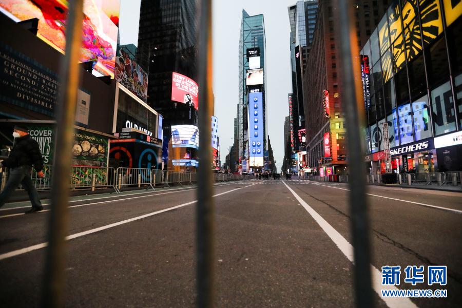 這是2020年12月31日拍攝的空蕩的美國紐約時報廣場。新華社記者 王迎 攝