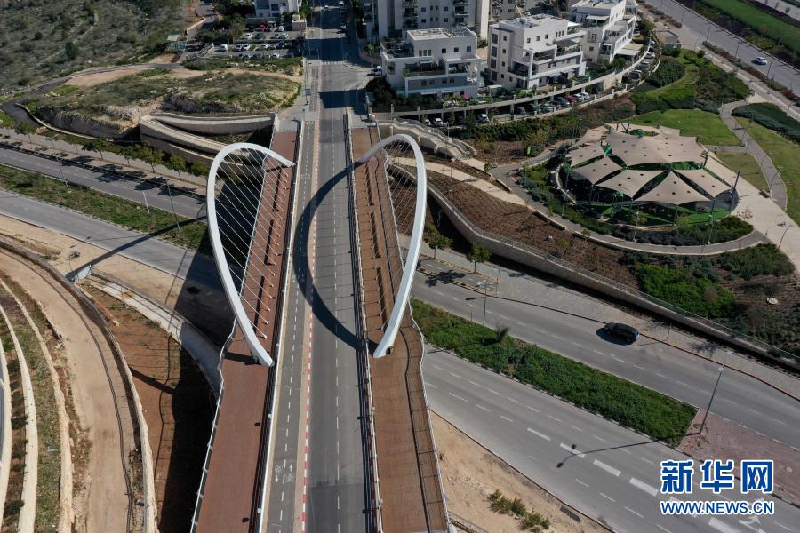 這是2021年1月8日在以色列莫迪因拍攝的全面“封城”期間空蕩的道路(無人機照片)。新華社發(fā)(吉爾·科恩·馬根攝)