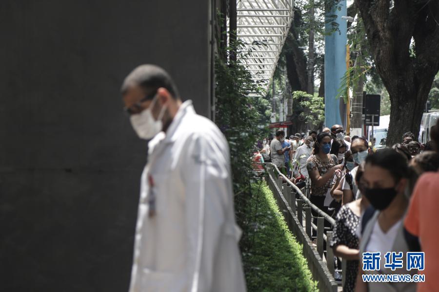2021年1月19日,在巴西圣保羅,醫(yī)務(wù)人員排隊等待接種中國新冠疫苗。新華社發(fā)(拉赫爾·帕特拉索攝)