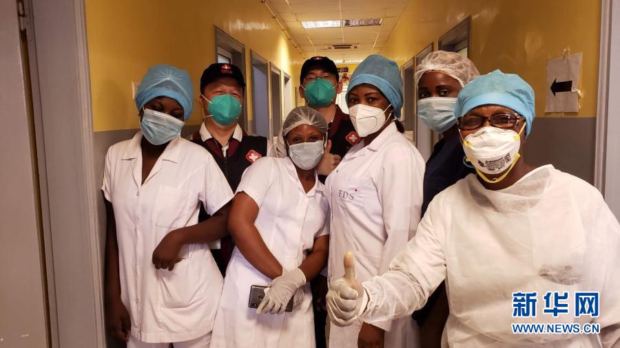 ??2020年5月26日,中國抗疫醫(yī)療專家組在剛果(布)首都布拉柴維爾指導(dǎo)新冠肺炎病房建設(shè)時,與當?shù)匾痪€醫(yī)務(wù)人員合影。新華社發(fā)