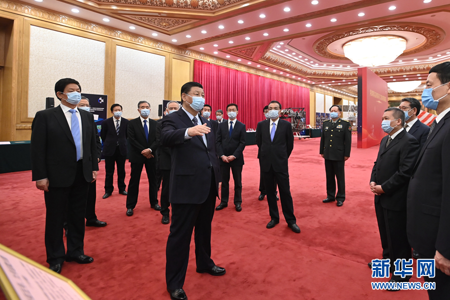 2月22日,黨和國家領(lǐng)導(dǎo)人習(xí)近平、李克強、栗戰(zhàn)書、汪洋、王滬寧、趙樂際、韓正等在北京人民大會堂會見探月工程嫦娥五號任務(wù)參研參試人員代表并參觀月球樣品和探月工程成果展覽。這是習(xí)近平等在人民大會堂東大廳參觀月球樣品和探月工程成果展覽。新華社記者 李學(xué)仁 攝