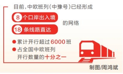 大通道串起大世界。目前,中歐班列(中豫號(hào))已經(jīng)形成“8個(gè)口岸出入境、18條線路直達(dá)”的網(wǎng)絡(luò),累計(jì)開(kāi)行超過(guò)6000班、占全國(guó)中歐班列開(kāi)行數(shù)量的十分之一。