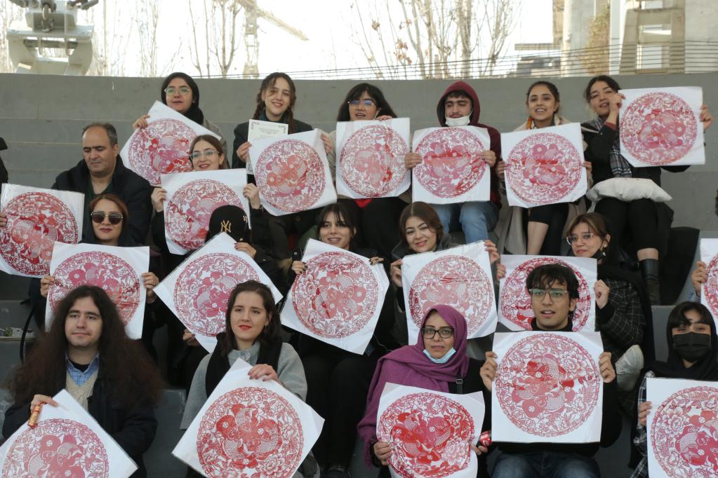 1月18日,伊朗青年學(xué)生在伊朗首都德黑蘭的一處公園展示中國(guó)春節(jié)裝飾品。當(dāng)日,伊朗德黑蘭大學(xué)孔子學(xué)院組織青年學(xué)生與中方教師一起學(xué)習(xí)傳統(tǒng)年俗、體驗(yàn)中國(guó)文化,共同迎接春節(jié)到來(lái)。