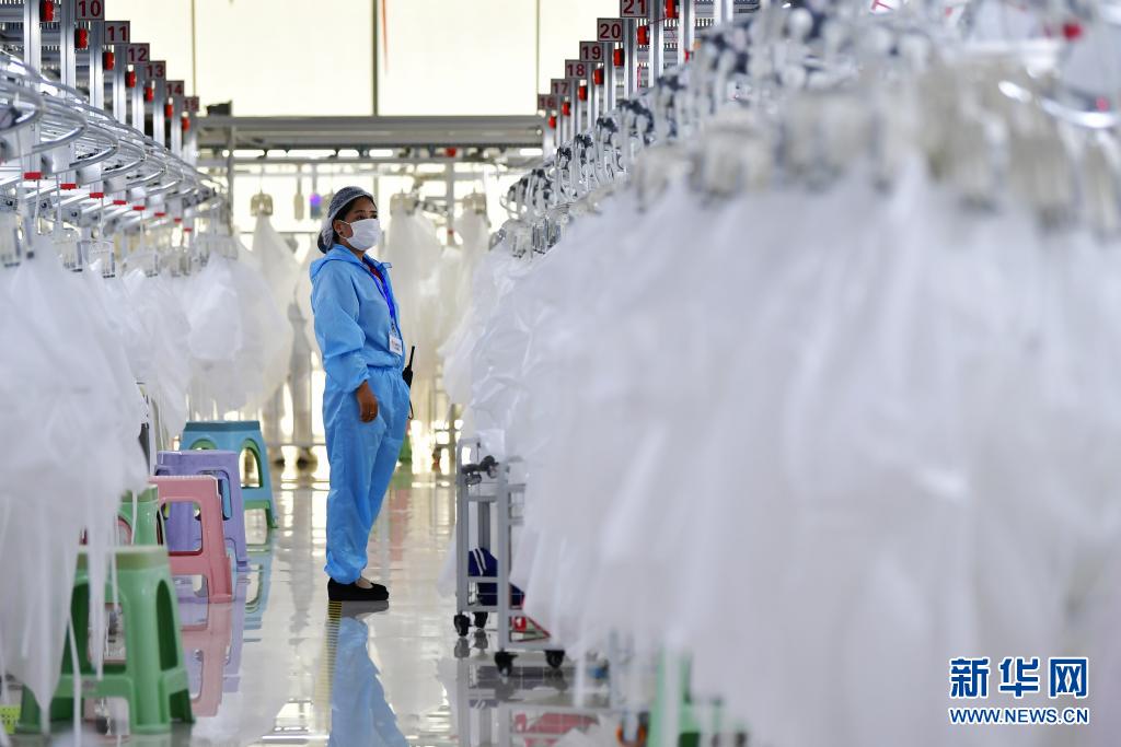 在甘肅臨夏回族自治州積石山縣,依托東西部扶貧協(xié)作平臺引進(jìn)的服裝加工企業(yè)甘肅拓奇扶貧車間的員工在服裝加工生產(chǎn)線上作業(yè)(2020年8月9日攝)。新華社記者 陳斌 攝