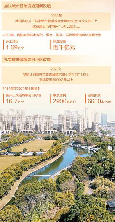 聚焦居民所思所想所盼所急,各地大力實施城市更新行動,讓人民群眾在城市生活得更方便、更舒心、更美好。2022年,我國實施城市燃?xì)?、供水、排水、供熱等管道老化更新改造,開工項目1.69萬個、完成投資近千億元。2019年至2022年,全國累計新開工改造城鎮(zhèn)老舊小區(qū)16.7萬個,惠及居民2900多萬戶,完成投資6600多億元。