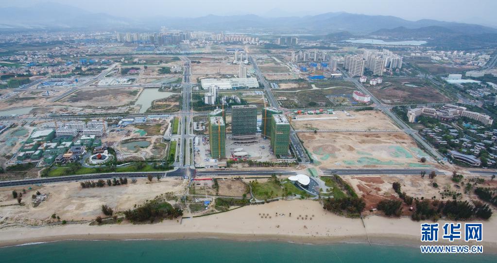 這是2月20日拍攝的??趪H免稅城項目施工現(xiàn)場(無人機照片)。新華社記者 張麗蕓 攝
