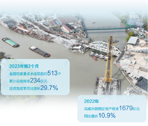 爭(zhēng)分奪秒,一張張“施工圖”正化作“實(shí)景圖”。據(jù)統(tǒng)計(jì),今年前2個(gè)月,全國(guó)在建重點(diǎn)水運(yùn)項(xiàng)目約513個(gè),累計(jì)完成投資234億元,與去年同期相比投資完成率增長(zhǎng)29.7%。一系列水運(yùn)工程的順利推進(jìn),為推動(dòng)擴(kuò)內(nèi)需、穩(wěn)增長(zhǎng)提供了有力支撐。