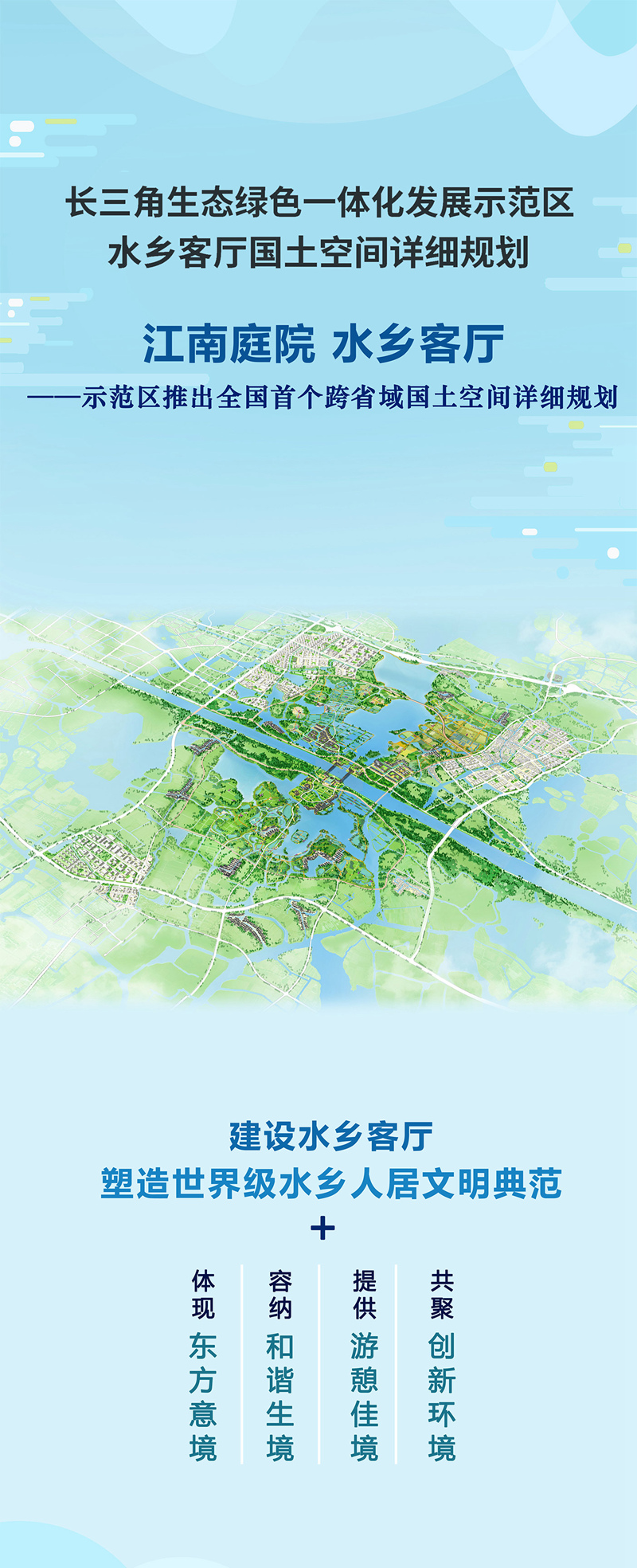 5月24日上午,在上海舉行了長(zhǎng)三角一體化示范區(qū)水鄉(xiāng)客廳國(guó)土空間詳細(xì)規(guī)劃新聞發(fā)布會(huì),會(huì)上發(fā)布了《長(zhǎng)三角生態(tài)綠色一體化發(fā)展示范區(qū)水鄉(xiāng)客廳國(guó)土空間詳細(xì)規(guī)劃(2021-2035年)》,這也是全國(guó)首個(gè)跨省域的國(guó)土空間詳細(xì)規(guī)劃。水鄉(xiāng)客廳國(guó)土空間詳細(xì)規(guī)劃共13章、45節(jié),并包含了42張圖集以及詳細(xì)圖則,未來示范區(qū)將如何建設(shè)水鄉(xiāng)客廳?一圖詳解