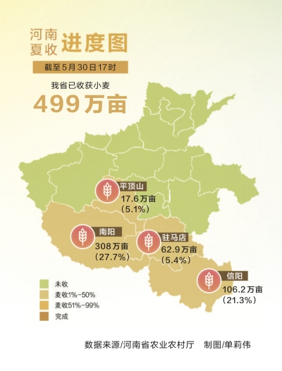 5月30日,正陽縣銅鐘鎮(zhèn)小李村村民正在搶收小麥。 高萬寶 攝