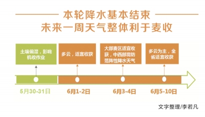 這輪降雨對麥種的品質(zhì)有多大影響?“有影響,但影響不大?!卑拙Ы忉專瑸榱祟A(yù)防可能出現(xiàn)的極端天氣,種麥時就平均種了4個品種小麥,其中兩個是正常熟的,兩個是晚熟的。正常熟的大部分在5月28日搶收了,晚熟的6月5日以后才能收割。