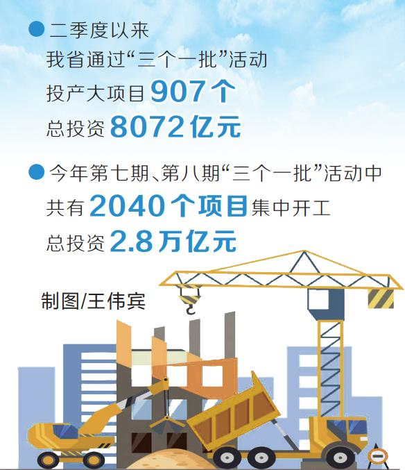 省發(fā)展改革委相關負責人介紹,今年以來,我省以拼搶之姿推動一批含新量、含金量、含綠量較高的重大項目開工建設,今年第七期、第八期“三個一批”活動中,共有2040個項目集中開工,總投資2.8萬億元,掀起了新一輪建設高潮。