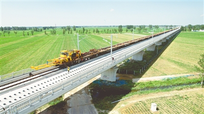 ??記者從中國(guó)鐵路鄭州局集團(tuán)有限公司獲悉,7月12日,隨著最后一組500米長(zhǎng)鋼軌在清豐特大橋順利鋪設(shè)到位,濟(jì)鄭高鐵濮陽至魯豫省界段高速鐵路正線鋪軌全面貫通,為如期實(shí)現(xiàn)開通目標(biāo)奠定了堅(jiān)實(shí)基礎(chǔ)。