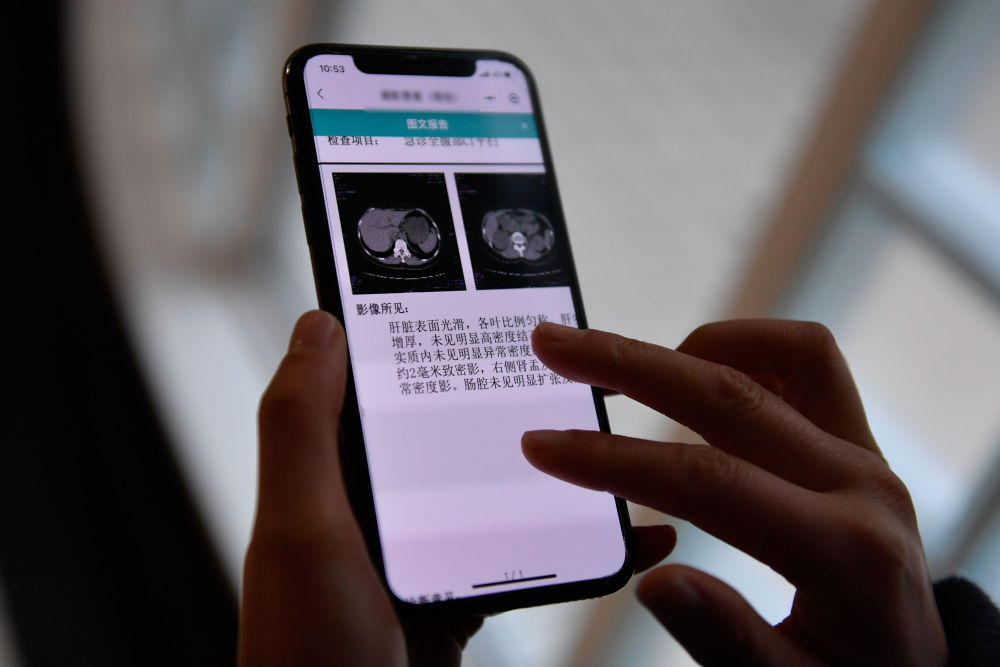 2021年1月20日,在杭州市余杭區(qū)第一人民醫(yī)院,居民通過手機(jī)使用“健康余杭智慧云共享平臺”查看檢查圖文報告。新華社記者 黃宗治 攝