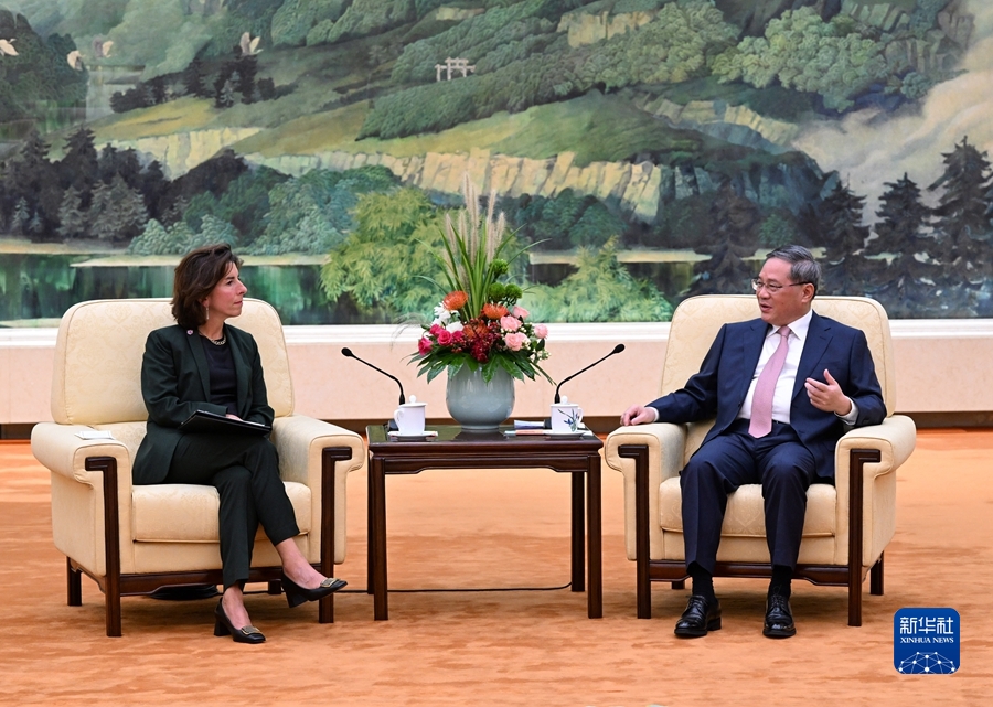 8月29日下午,國(guó)務(wù)院總理李強(qiáng)在北京人民大會(huì)堂會(huì)見美國(guó)商務(wù)部長(zhǎng)雷蒙多。新華社記者 饒愛民 攝