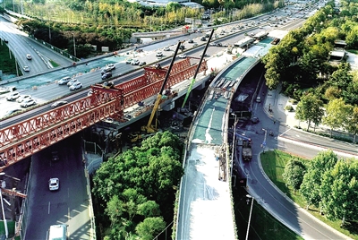 ??同時(shí),黃河路立交西向南匝道以及集散車(chē)道南段的鋼箱梁也完成架設(shè)和焊接,正在緊張地施工防撞墻和橋面鋪裝,預(yù)計(jì)11月下旬完成改造通車(chē)。
