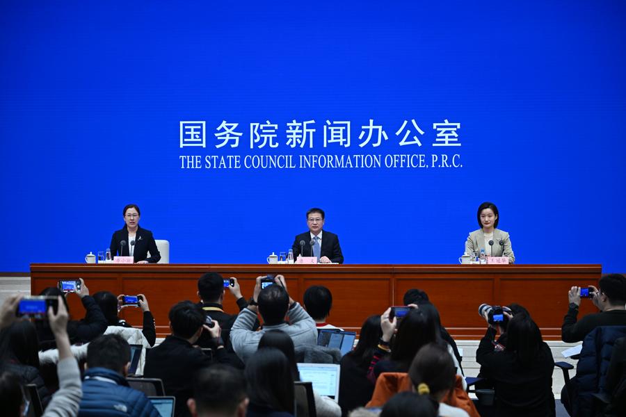 ??1月17日,國務(wù)院新聞辦公室在北京舉行新聞發(fā)布會,請國家統(tǒng)計局局長康義、國家統(tǒng)計局新聞發(fā)言人王冠華介紹2023年國民經(jīng)濟(jì)運(yùn)行情況,并答記者問。新華社記者 金良快 攝
