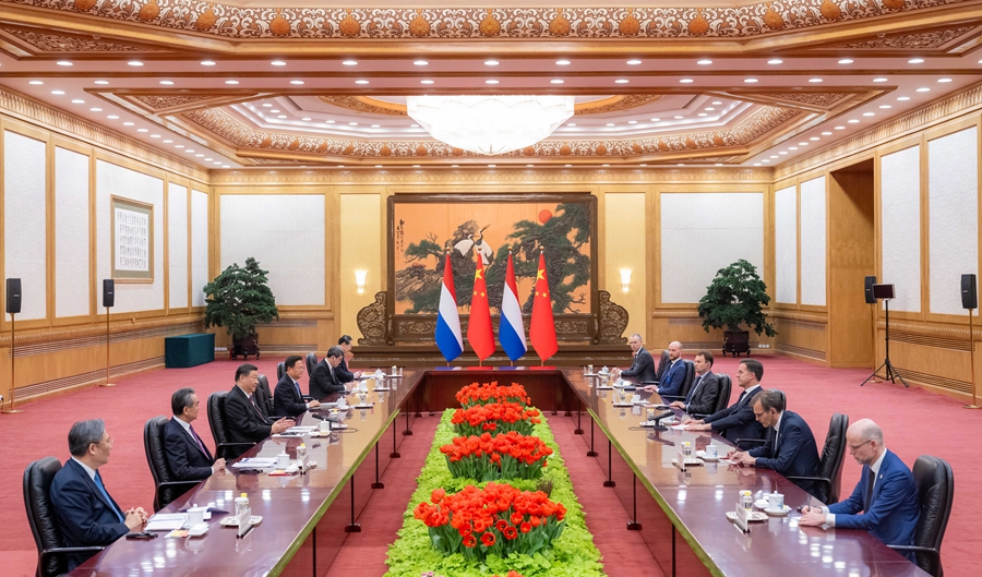 習(xí)近平指出,近年來,中荷關(guān)系穩(wěn)健快速發(fā)展,兩國各領(lǐng)域合作持續(xù)深化,荷蘭已經(jīng)成為名副其實(shí)的中歐合作“門戶”。中方愿同荷方保持各層級(jí)交往,堅(jiān)持溝通對(duì)話,堅(jiān)持互利共贏,推動(dòng)中荷開放務(wù)實(shí)的全面合作伙伴關(guān)系不斷發(fā)展。中方愿擴(kuò)大荷蘭優(yōu)質(zhì)商品進(jìn)口,歡迎荷蘭企業(yè)來華投資,也希望荷方為中國企業(yè)提供公正、透明的營商環(huán)境。雙方要積極推進(jìn)農(nóng)業(yè)、水利、能源等傳統(tǒng)合作,同時(shí)挖掘人工智能、綠色轉(zhuǎn)型、銀發(fā)經(jīng)濟(jì)等領(lǐng)域合作潛力。希望雙方繼續(xù)采取更多便利人員往來措施,鼓勵(lì)教育、文化和民間交流。中方愿同荷方加強(qiáng)在聯(lián)合國、世界貿(mào)易組織等多邊機(jī)構(gòu)的溝通協(xié)調(diào),共同應(yīng)對(duì)氣候變化、生物多樣性等全球挑戰(zhàn)。