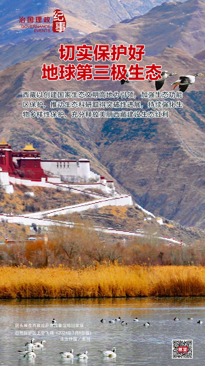 ??◇2021年7月,中共中央總書記、國家主席、中央軍委主席習(xí)近平在西藏考察時指出,保護(hù)好西藏生態(tài)環(huán)境,利在千秋、澤被天下。要牢固樹立綠水青山就是金山銀山、冰天雪地也是金山銀山的理念,保持戰(zhàn)略定力,提高生態(tài)環(huán)境治理水平,推動青藏高原生物多樣性保護(hù),堅定不移走生態(tài)優(yōu)先、綠色發(fā)展之路,努力建設(shè)人與自然和諧共生的現(xiàn)代化,切實(shí)保護(hù)好地球第三極生態(tài)。 ??◇西藏以創(chuàng)建國家生態(tài)文明高地為引領(lǐng),加強(qiáng)生態(tài)功能區(qū)保護(hù),推動生態(tài)科研取得突破性進(jìn)展,持續(xù)強(qiáng)化生物多樣性保護(hù),充分釋放美麗西藏建設(shè)生態(tài)紅利。 ??◇2023年底,西藏全區(qū)7市(地)空氣環(huán)境質(zhì)量平均優(yōu)良天數(shù)比例達(dá)99%以上,沙塵天氣大幅減少;主要江河湖泊水質(zhì)達(dá)到或優(yōu)于III類標(biāo)準(zhǔn),城鎮(zhèn)集中式飲用水水源地水質(zhì)達(dá)標(biāo)率100%,土壤環(huán)境安全穩(wěn)定,西藏生態(tài)環(huán)境質(zhì)量保持全國領(lǐng)先水平。 ??◇西藏建立起以國家公園為主體的自然保護(hù)地體系,將超過60萬平方公里的國土納入生態(tài)保護(hù)紅線,占全區(qū)國土面積的50%以上。 ??◇我國正在推進(jìn)“三極環(huán)境與氣候變化”國際大科學(xué)計劃,聚焦人類共同命運(yùn),構(gòu)建三極科學(xué)研究共同體,應(yīng)對全球氣候變化挑戰(zhàn)。 ??◇“國家公園的建設(shè),有效維護(hù)重點(diǎn)野生動物核心分布區(qū)的原真性和完整性?!?/strong> ??◇“我們的工作,就是利用種子或植物活體開展實(shí)驗,最終返回原生地栽培,保護(hù)好生物多樣性。” ??◇“桃花節(jié)”自2002年起舉辦至今,名氣越來越大,吸引著來自五湖四海的游客。如今,嘎拉村村民年人均可支配收入達(dá)3.5萬元。 ??◇目前,青藏高原生態(tài)系統(tǒng)碳匯總量為每年1.62億噸,占全國生態(tài)系統(tǒng)碳匯的8%至16%,今后這一比例還將增加。 這里是世界上生態(tài)環(huán)境質(zhì)量最好的地區(qū)之一,空氣質(zhì)量與北極地區(qū)相當(dāng),土壤環(huán)境總體處于自然本底狀態(tài)。 ??這里是世界上生物多樣性最豐富的地區(qū)之一,中國最高的樹在這里茁壯生長,藏羚羊、黑頸鶴、雪豹、孟加拉虎等野生動物在這里繁衍生息。 ??這里也是生態(tài)脆弱區(qū)、全球氣候變化敏感區(qū),生態(tài)環(huán)境一旦破壞,修復(fù)難度非常大。 ??青藏高原,素有“世界屋脊”“地球第三極”“亞洲水塔”之稱,是重要的國家生態(tài)安全屏障。保護(hù)好青藏高原生態(tài)就是對中華民族生存和發(fā)展的最大貢獻(xiàn)。 ??2021年7月,中共中央總書記、國家主席、中央軍委主席習(xí)近平在西藏考察時指出,保護(hù)好西藏生態(tài)環(huán)境,利在千秋、澤被天下。要牢固樹立綠水青山就是金山銀山、冰天雪地也是金山銀山的理念,保持戰(zhàn)略定力,提高生態(tài)環(huán)境治理水平,推動青藏高原生物多樣性保護(hù),堅定不移走生態(tài)優(yōu)先、綠色發(fā)展之路,努力建設(shè)人與自然和諧共生的現(xiàn)代化,切實(shí)保護(hù)好地球第三極生態(tài)。 ??特殊的生態(tài),得到特殊的關(guān)注和保護(hù)。2021年7月,中央全面深化改革委員會第二十次會議審議通過《青藏高原生態(tài)環(huán)境保護(hù)和可持續(xù)發(fā)展方案》。2023年4月,習(xí)近平主席簽署中華人民共和國主席令,公布《中華人民共和國青藏高原生態(tài)保護(hù)法》。 ??“我們牢牢把握習(xí)近平總書記重要指示精神,站在對歷史負(fù)責(zé)、對人民負(fù)責(zé)、對世界負(fù)責(zé)的高度,創(chuàng)建國家生態(tài)文明高地,堅決扛起生態(tài)文明建設(shè)政治責(zé)任,努力做到在保護(hù)中發(fā)展、在發(fā)展中實(shí)現(xiàn)更高水平的保護(hù),努力做到生態(tài)文明建設(shè)走在全國前列?!蔽鞑刈灾螀^(qū)黨委書記王君正說。 ??從頒布實(shí)施《西藏自治區(qū)國家生態(tài)文明高地建設(shè)條例》《西藏自治區(qū)環(huán)境保護(hù)條例》等地方性法規(guī)和政府規(guī)章,到成立西藏自治區(qū)黨委生態(tài)文明建設(shè)領(lǐng)導(dǎo)小組,再到完善執(zhí)法流程等一系列機(jī)制,西藏以創(chuàng)建國家生態(tài)文明高地為引領(lǐng),加強(qiáng)生態(tài)功能區(qū)保護(hù),推動生態(tài)科研取得突破性進(jìn)展,持續(xù)強(qiáng)化生物多樣性保護(hù),充分釋放美麗西藏建設(shè)生態(tài)紅利。 ??生態(tài)優(yōu)先,綠色發(fā)展。在“地球第三極”的山水間,各族干部群眾綿綿用力、久久為功,扎實(shí)推進(jìn)生態(tài)文明建設(shè)。 ??不斷筑牢國家生態(tài)安全屏障 ??西藏是國家生態(tài)安全屏障,具有特殊的生態(tài)地位和價值,在我國以至全球生態(tài)安全中發(fā)揮著極其重要的作用。從自然環(huán)境看,西藏自然生態(tài)先天敏感而脆弱,隨著全球氣候變暖,青藏高原暖濕化跡象明顯,生態(tài)安全隱患和自然災(zāi)害風(fēng)險隨之不斷增加。 ??“西藏深刻認(rèn)識青藏高原最大的價值在生態(tài)、最大的責(zé)任在生態(tài)、最大的潛力在生態(tài),以創(chuàng)建國家生態(tài)文明高地為抓手,努力構(gòu)筑生態(tài)系統(t