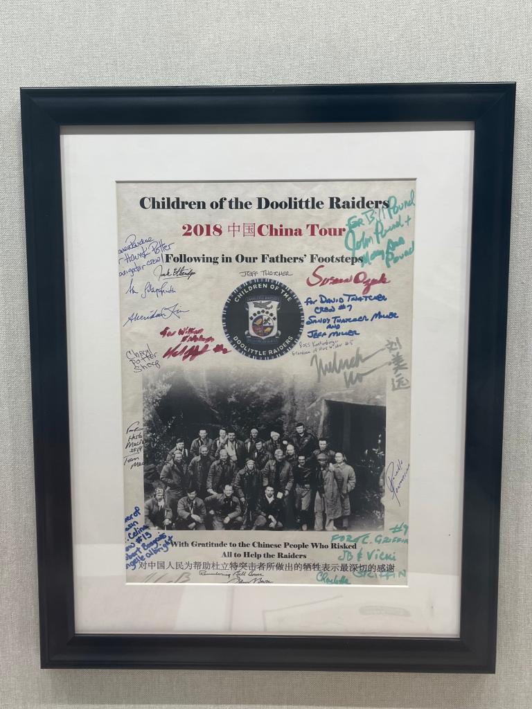 ??2018年,美國杜立特突襲者子女協(xié)會(huì)來衢州江山參加活動(dòng)時(shí)的簽名,目前在江山市博物館珍藏。