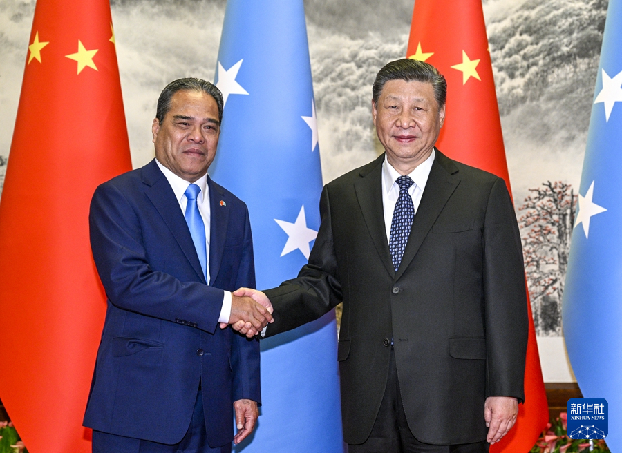 ??習(xí)近平指出,今年是中密建交35周年。兩國始終相互尊重、平等相待,友好合作、互利共贏,增進了兩國人民福祉。中方支持密方維護國家主權(quán)和獨立,走符合本國國情的發(fā)展道路,振興經(jīng)濟和改善民生。中方愿同密方一道,以兩國建交35周年為新起點,保持各層級交流對話,加強各領(lǐng)域互利合作,推動中密關(guān)系邁上新臺階。雙方要堅守兩國全面戰(zhàn)略伙伴關(guān)系的政治定位,堅持互利共贏、共同發(fā)展的合作基調(diào),加快推進共建“一帶一路”合作,加強基礎(chǔ)設(shè)施項目合作,密切文化、衛(wèi)生、教育、地方等人文交流。歡迎更多密克羅尼西亞聯(lián)邦青年來華深造。中國地方“送醫(yī)上島”、“送戲下?!钡软椖可钍苊苈?lián)邦民眾歡迎,雙方可以開展更多類似項目。中方愿在南南合作框架內(nèi)向密方提供應(yīng)對氣候變化援助、開展能力建設(shè)培訓(xùn)。加強在聯(lián)合國、太平洋島國論壇等多邊框架內(nèi)協(xié)調(diào)配合,共同踐行多邊主義,維護公道正義。