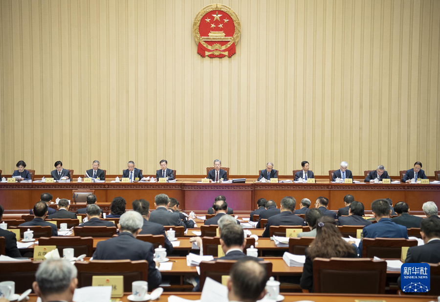 ??4月23日上午,十四屆全國(guó)人大常委會(huì)第九次會(huì)議在北京人民大會(huì)堂舉行第一次全體會(huì)議。趙樂(lè)際委員長(zhǎng)主持。新華社記者 李濤 攝