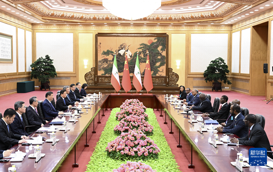 ??習(xí)近平強(qiáng)調(diào),當(dāng)今世界變亂交織,百年變局加速演進(jìn),人類社會面臨前所未有的挑戰(zhàn),發(fā)展中國家比以往任何時候都更需要加強(qiáng)團(tuán)結(jié)合作。中方愿同赤道幾內(nèi)亞等廣大發(fā)展中國家一道,弘揚(yáng)和平共處五項(xiàng)原則精神,在國際事務(wù)中加強(qiáng)協(xié)調(diào)配合,維護(hù)發(fā)展中國家共同利益和國際公平正義,推動構(gòu)建人類命運(yùn)共同體。發(fā)展同非洲國家團(tuán)結(jié)合作是中國外交政策的重要基石。中方愿同非方開好新一屆中非合作論壇峰會,進(jìn)一步弘揚(yáng)傳統(tǒng)友好,深化團(tuán)結(jié)協(xié)作,共商未來發(fā)展合作大計,開啟構(gòu)建中非命運(yùn)共同體的新篇章。