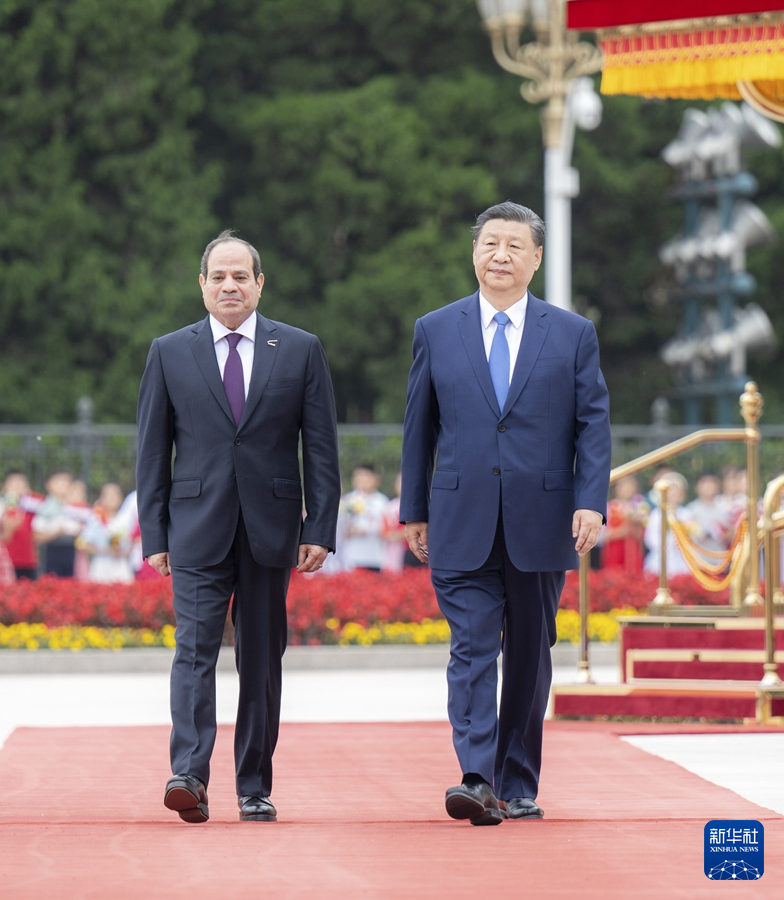 ??5月29日下午,國(guó)家主席習(xí)近平在北京人民大會(huì)堂同來華出席中國(guó)-阿拉伯國(guó)家合作論壇第十屆部長(zhǎng)級(jí)會(huì)議開幕式并進(jìn)行國(guó)事訪問的埃及總統(tǒng)塞西舉行會(huì)談。這是會(huì)談前,習(xí)近平在人民大會(huì)堂東門外廣場(chǎng)為塞西舉行歡迎儀式。新華社記者 翟健嵐 攝