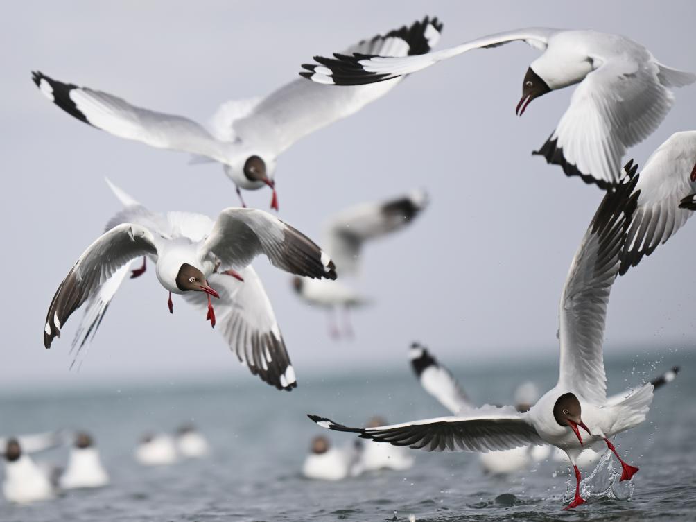 ??這是2023年4月13日在青海湖拍攝的棕頭鷗。新華社記者 張龍 攝