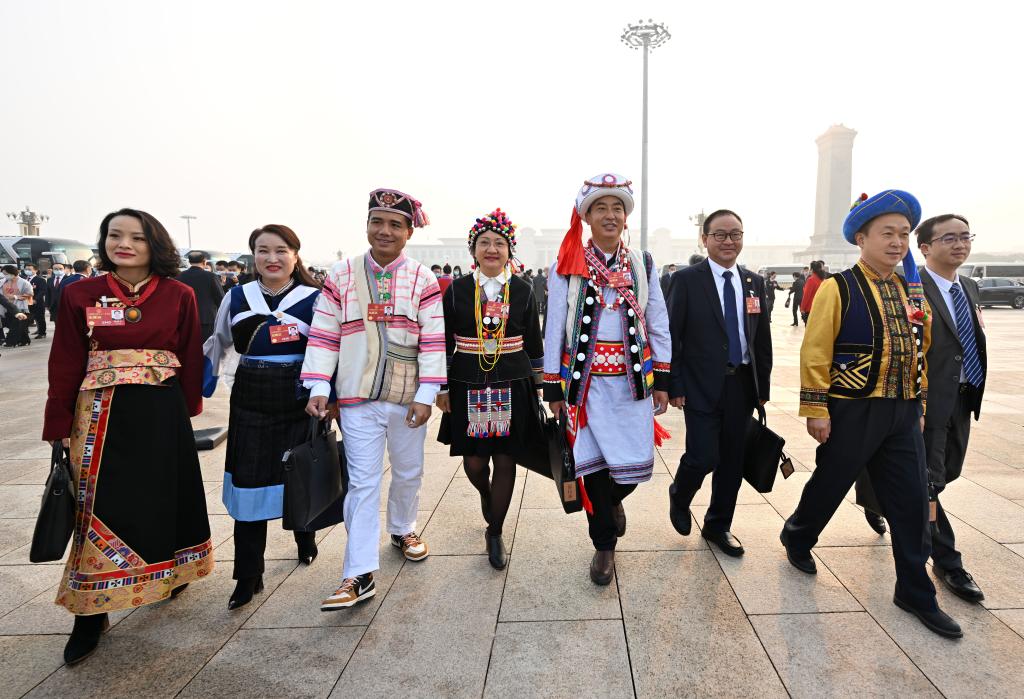 ??2023年3月5日,第十四屆全國人民代表大會(huì)第一次會(huì)議在北京人民大會(huì)堂開幕。這是全國人大代表走向會(huì)場(chǎng)。新華社記者 陳益宸 攝