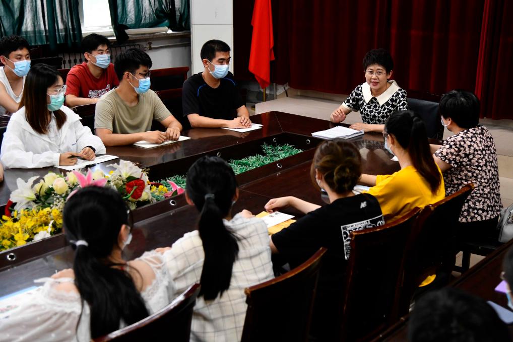 ??2020年6月16日,在山東濰坊學(xué)院法學(xué)院,全國人大代表高明芹在宣講《民法典》相關(guān)內(nèi)容。新華社記者 郭緒雷 攝