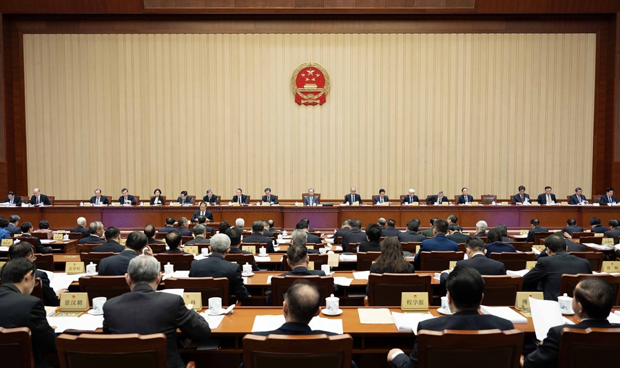 ??12月22日上午,十四屆全國(guó)人大常委會(huì)第十三次會(huì)議在北京人民大會(huì)堂舉行第二次全體會(huì)議。趙樂(lè)際委員長(zhǎng)出席。新華社記者 李濤 攝