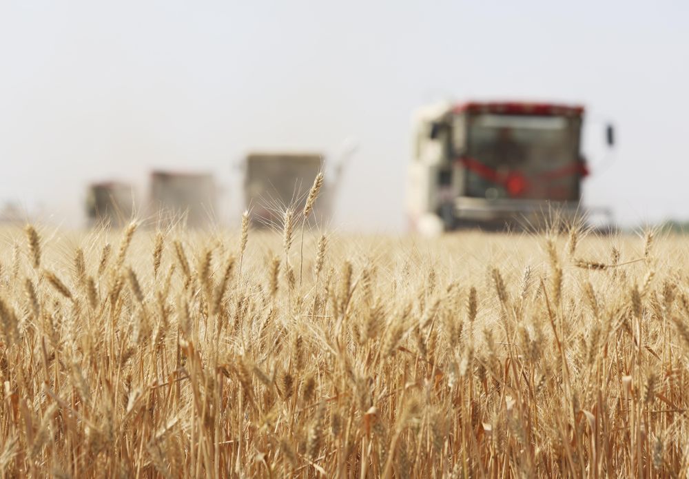 2025年6月10日,河北省石家莊市欒城區(qū)柳林屯鄉(xiāng)東牛村村民駕駛農(nóng)機(jī)收割小麥。